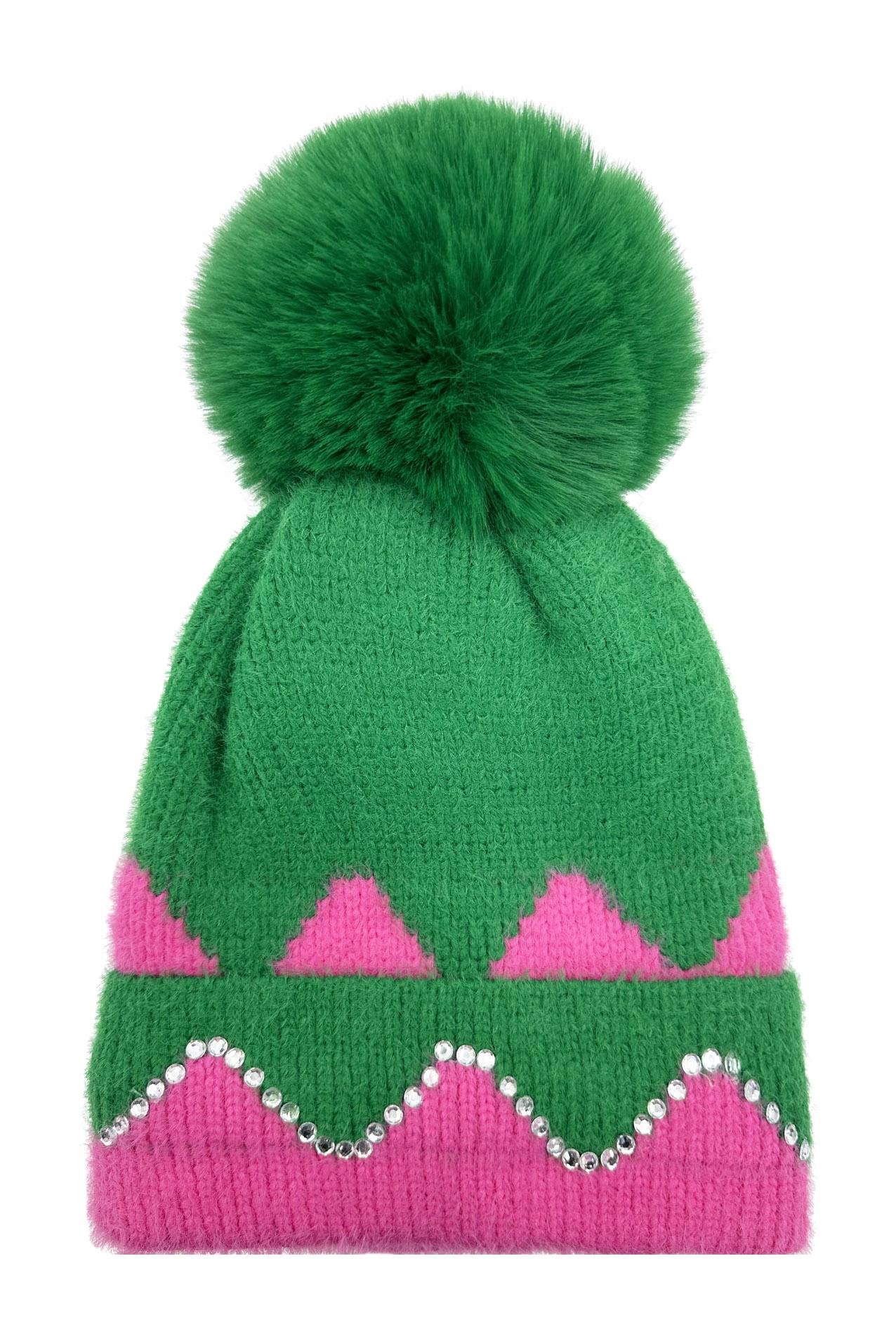 The image shows the hat with a large wool ball and a decorative element, highlighting its unique design. 📸