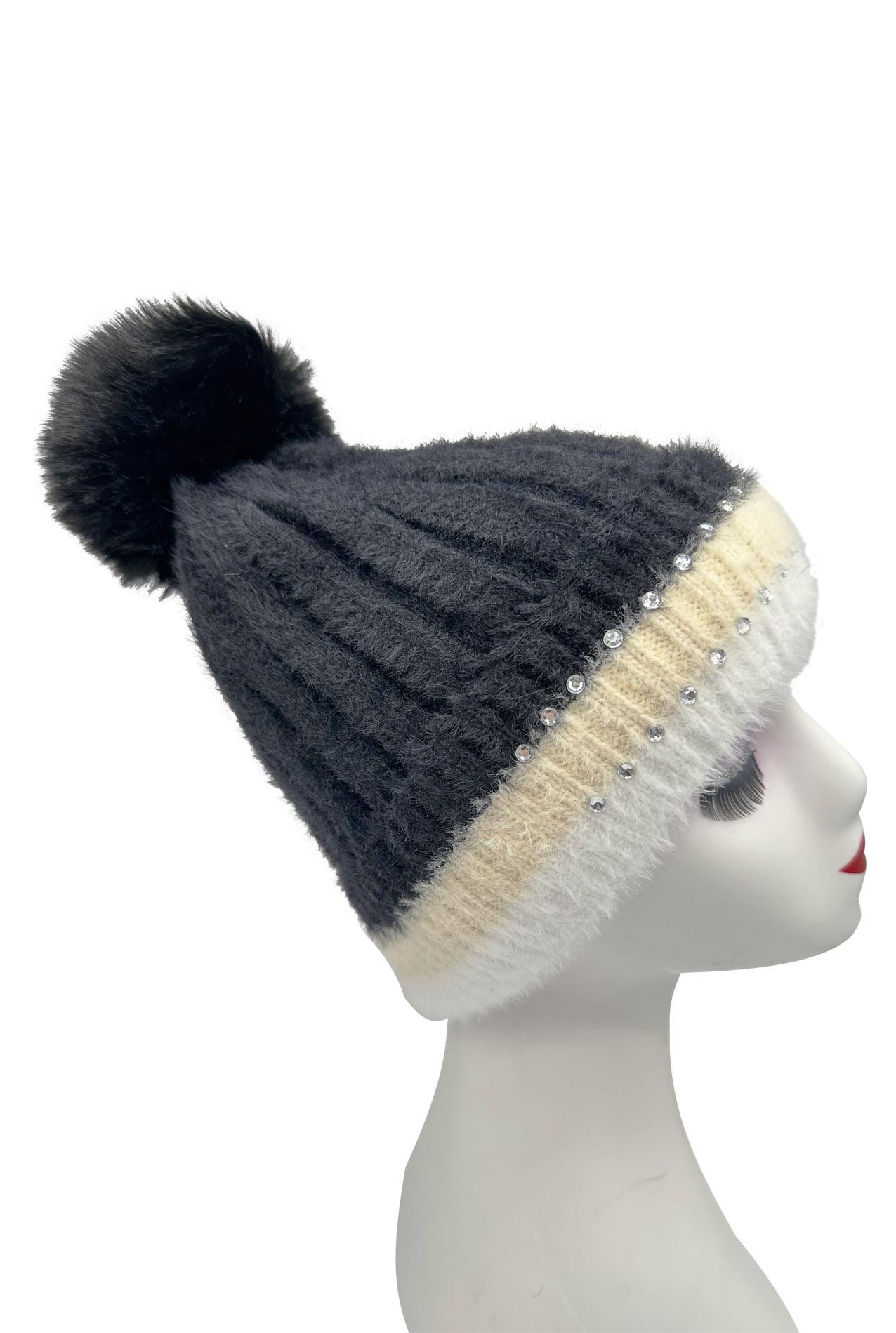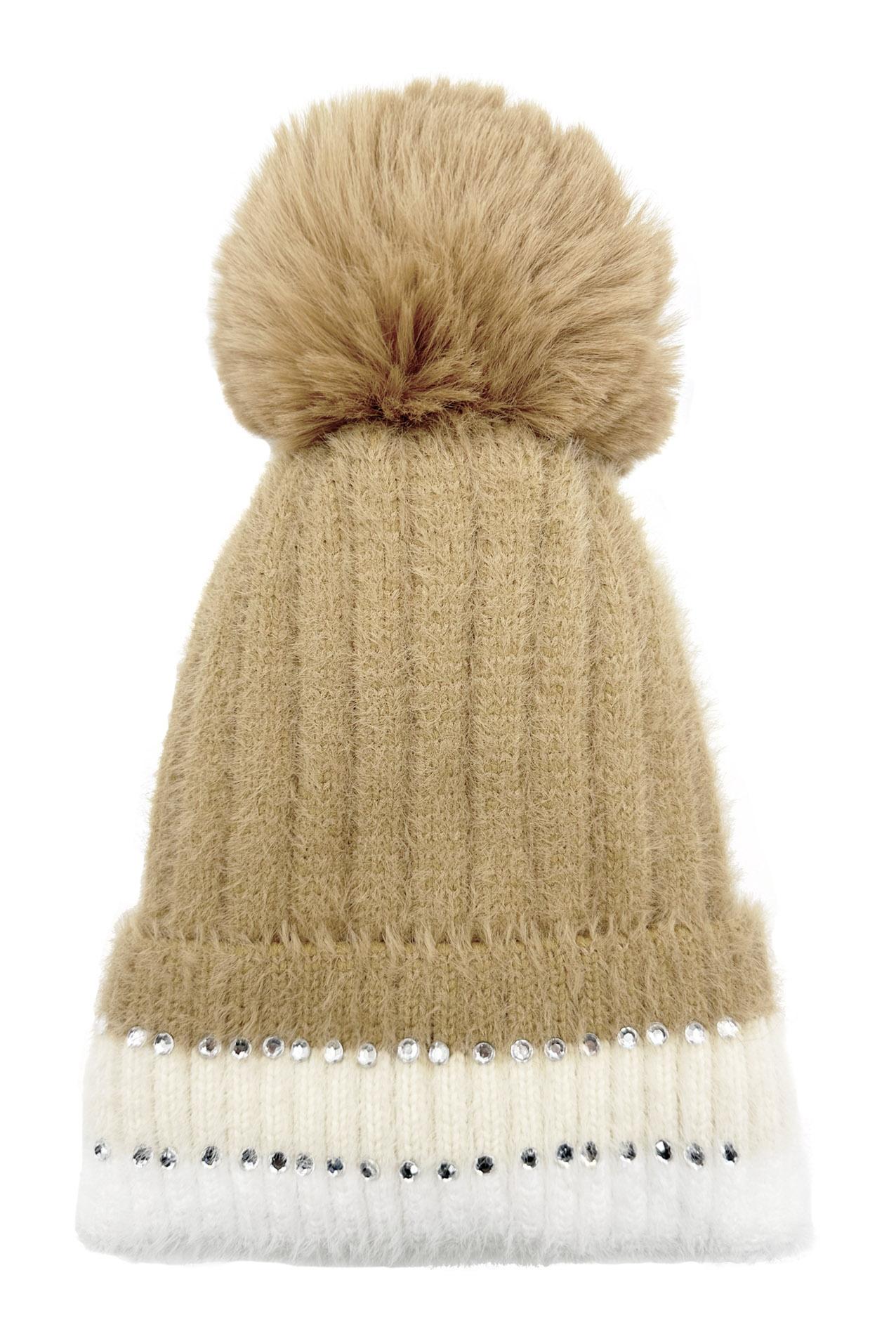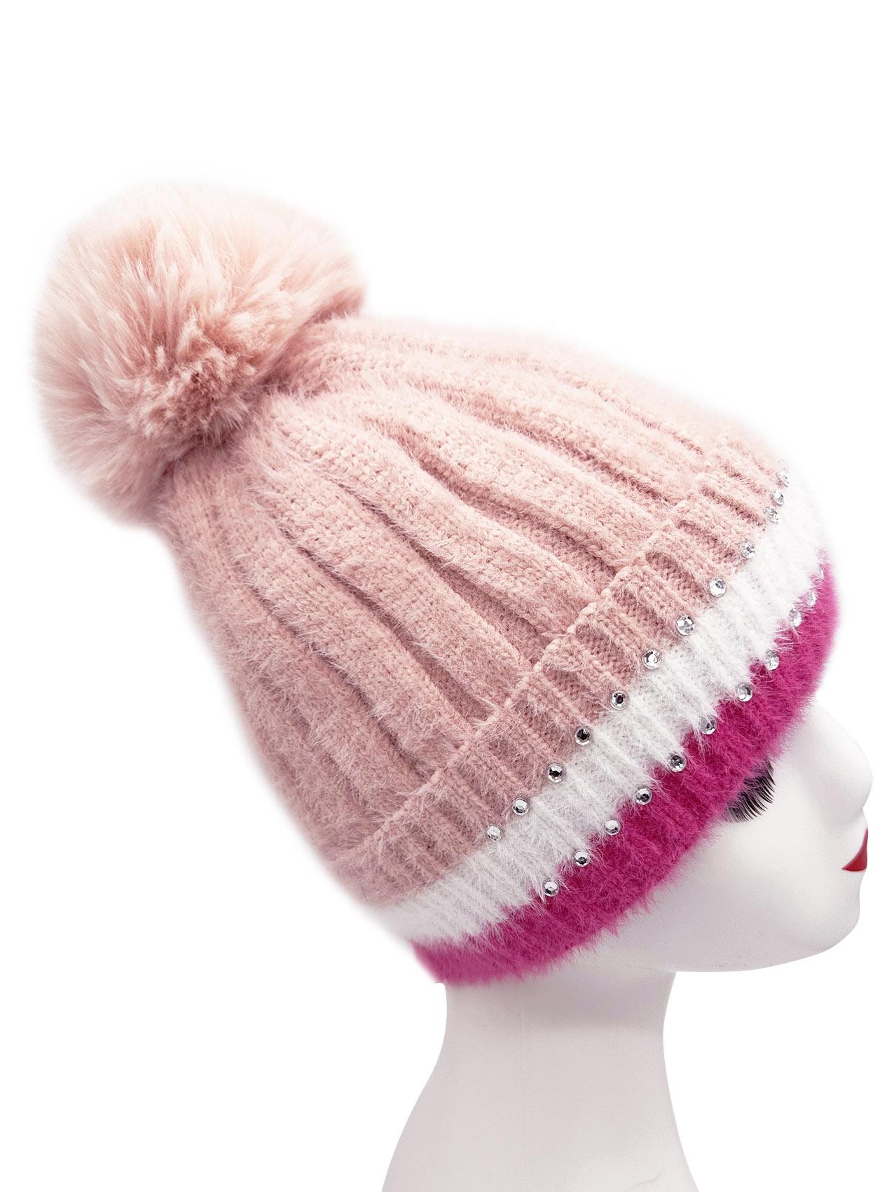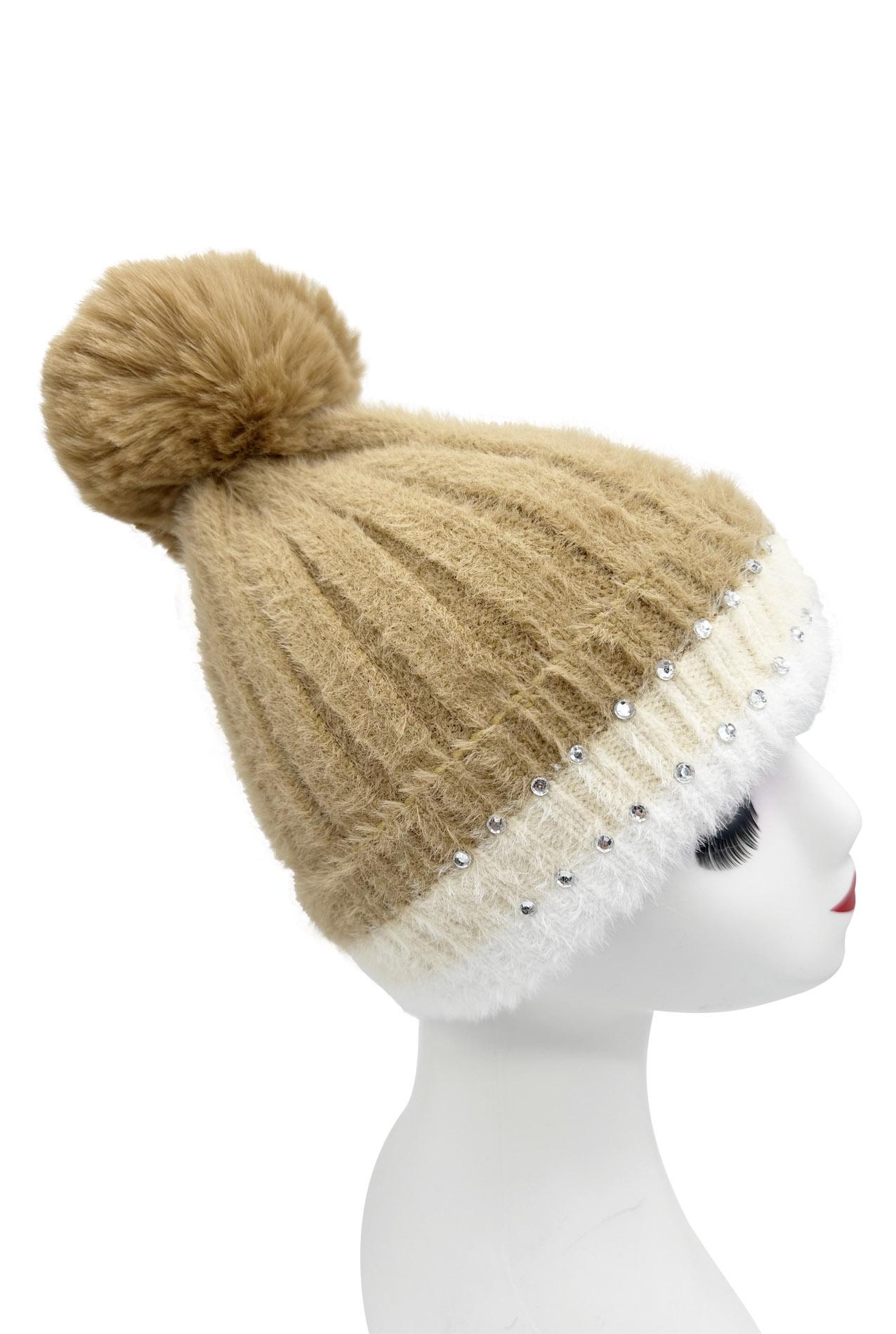 Winter New Velvet Warm Ear Protection Knitted Hat for Children Cute Plush Splicing Hoodie Riding Windproof with Rhinestone Detail