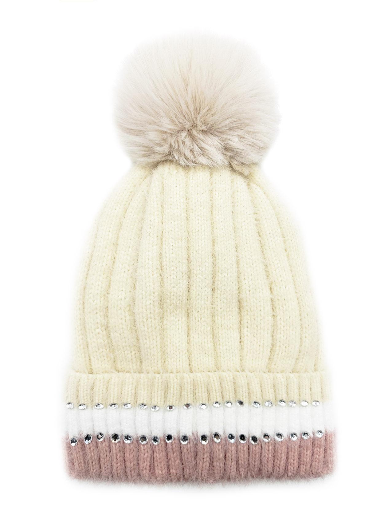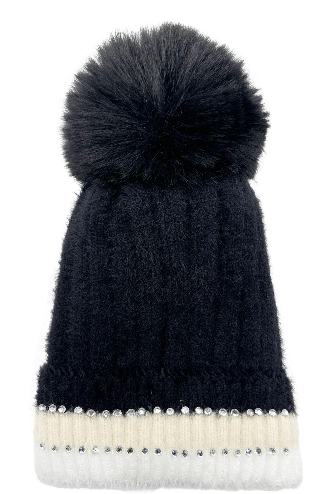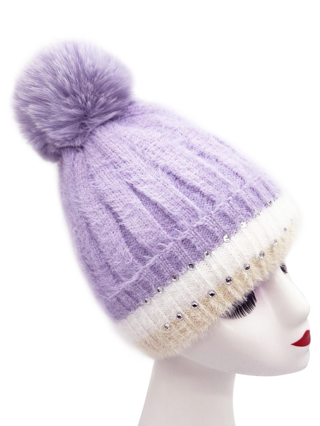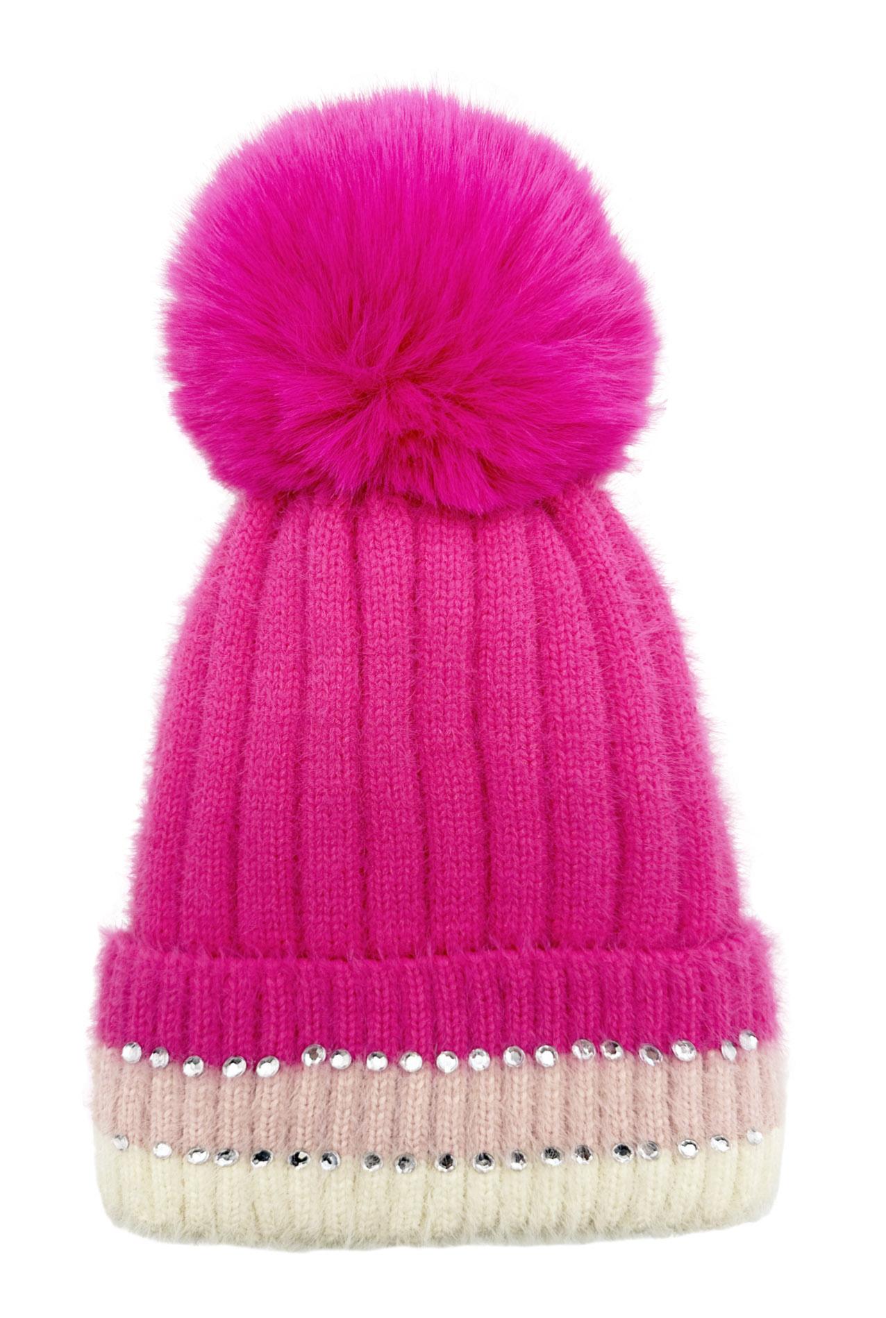 Winter New Velvet Warm Ear Protection Knitted Hat for Children Cute Plush Splicing Hoodie Riding Windproof with Rhinestone Detail