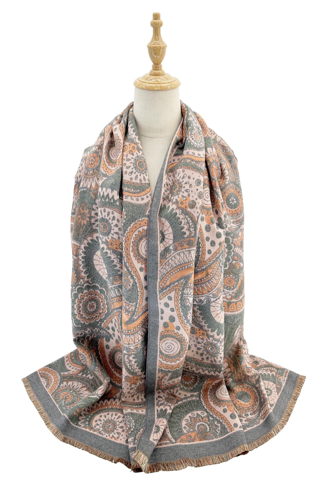 Elevate your style with this Women's Cashew Flower Long Shawl Scarf. Perfect for autumn and winter, this thick and warm accessory is a new style fashion must-have. The scarf features a beautiful cashew flower design, adding a touch of elegance to any outfit. Ideal for layering, it keeps you cozy without compromising on style.