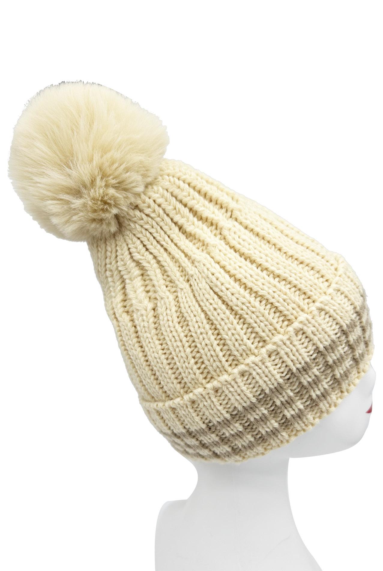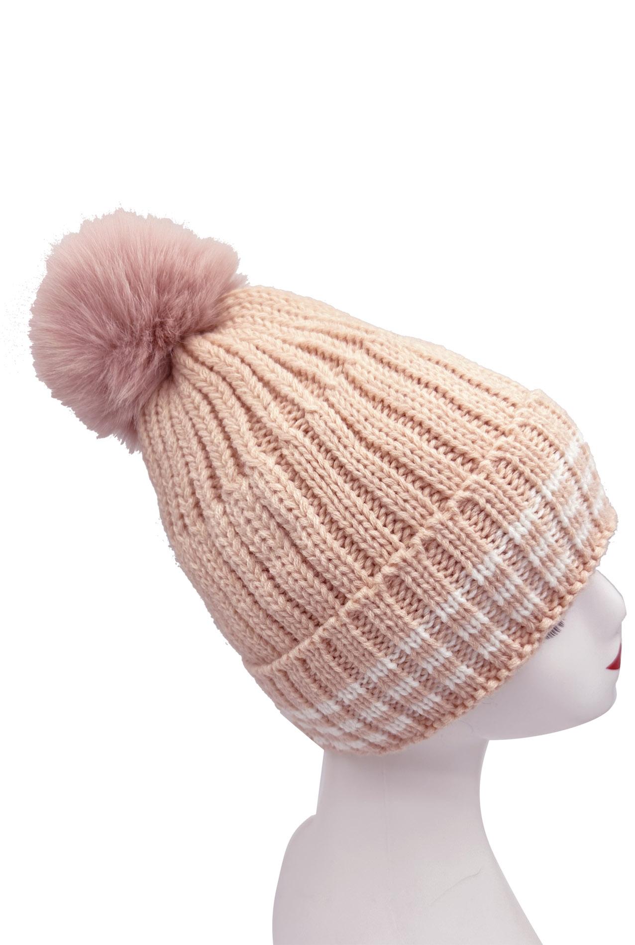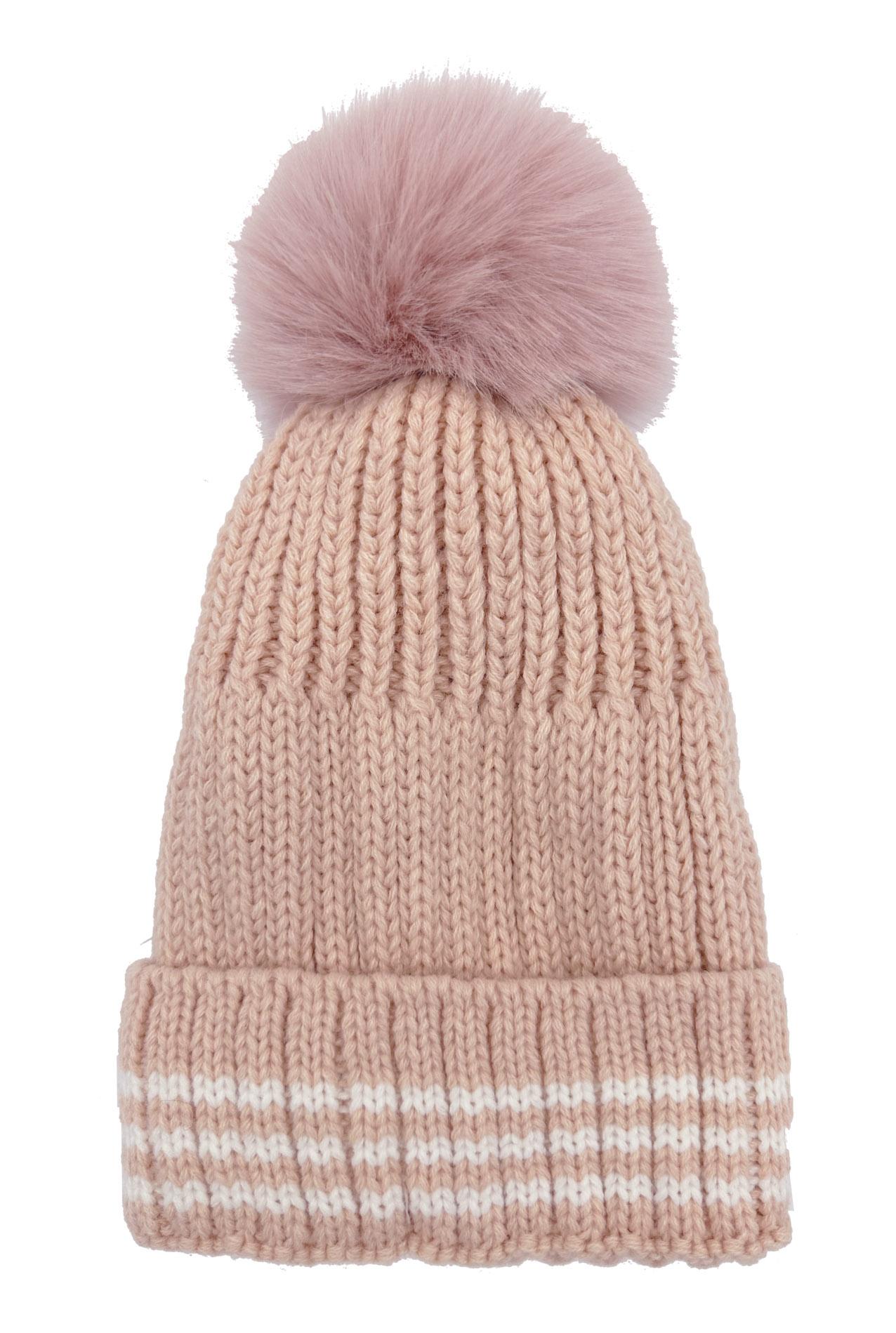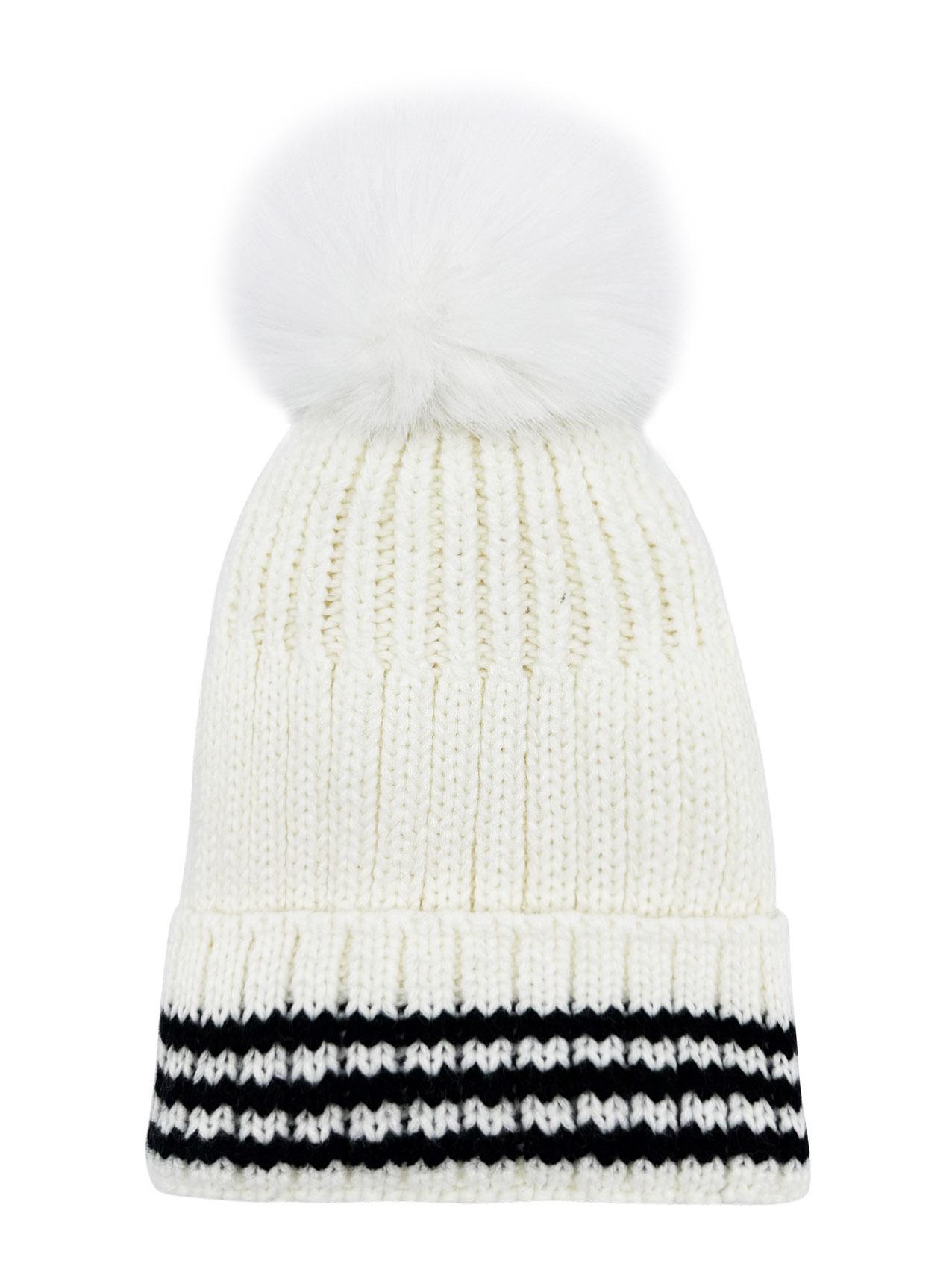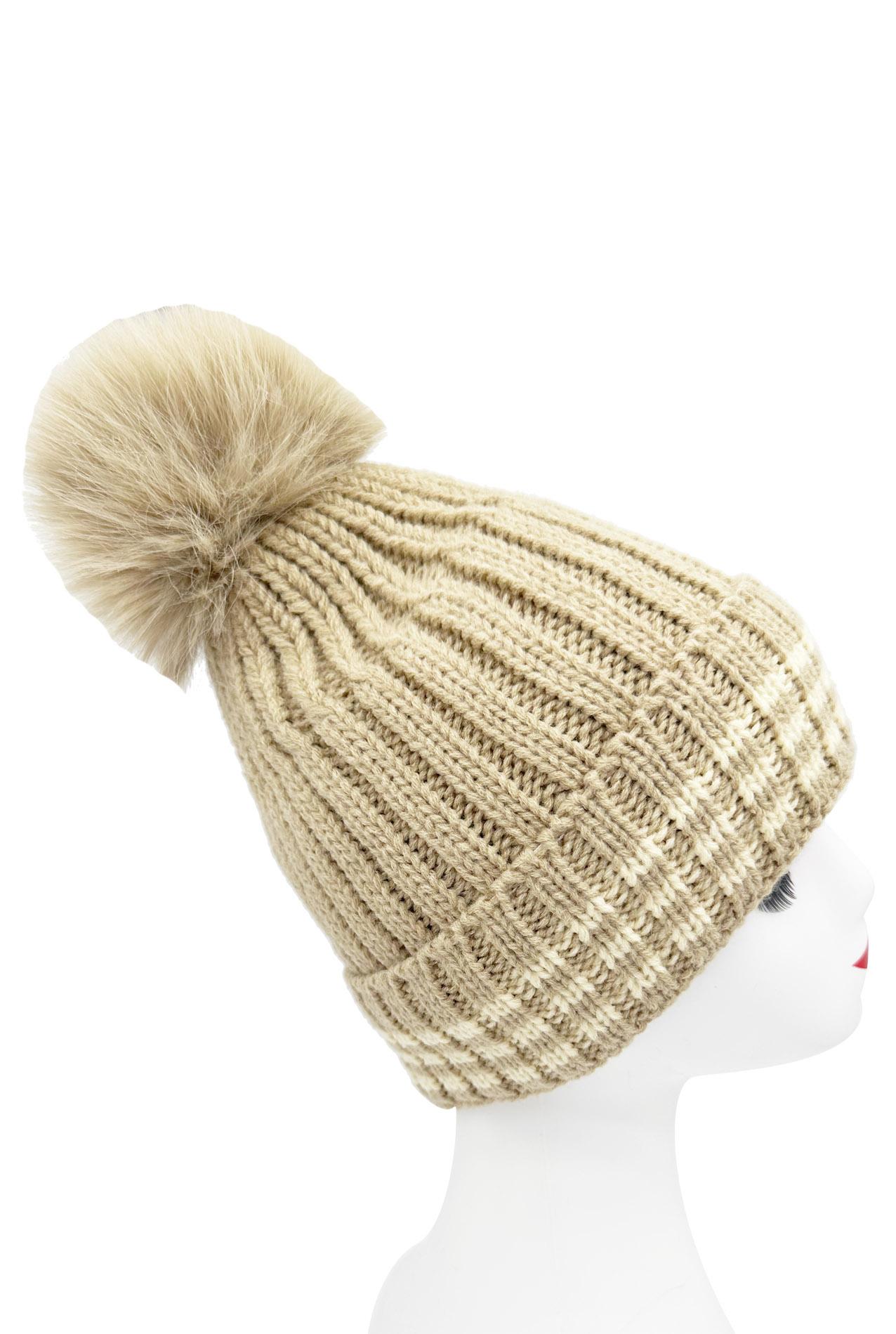 Autumn and Winter New Knitted Hat with Wool Ball and Thick Velvet for Warmth British English Style Beige Striped Design