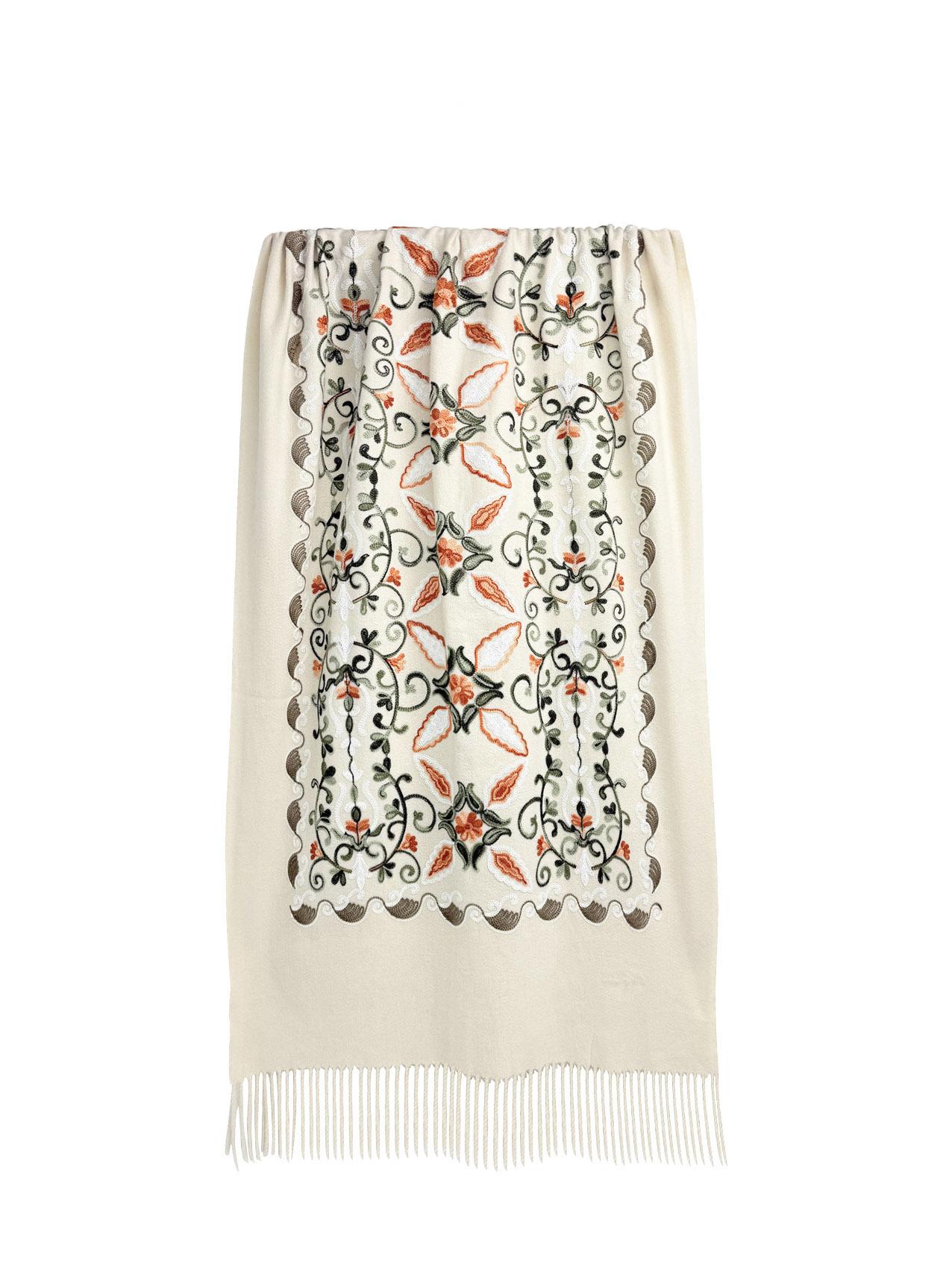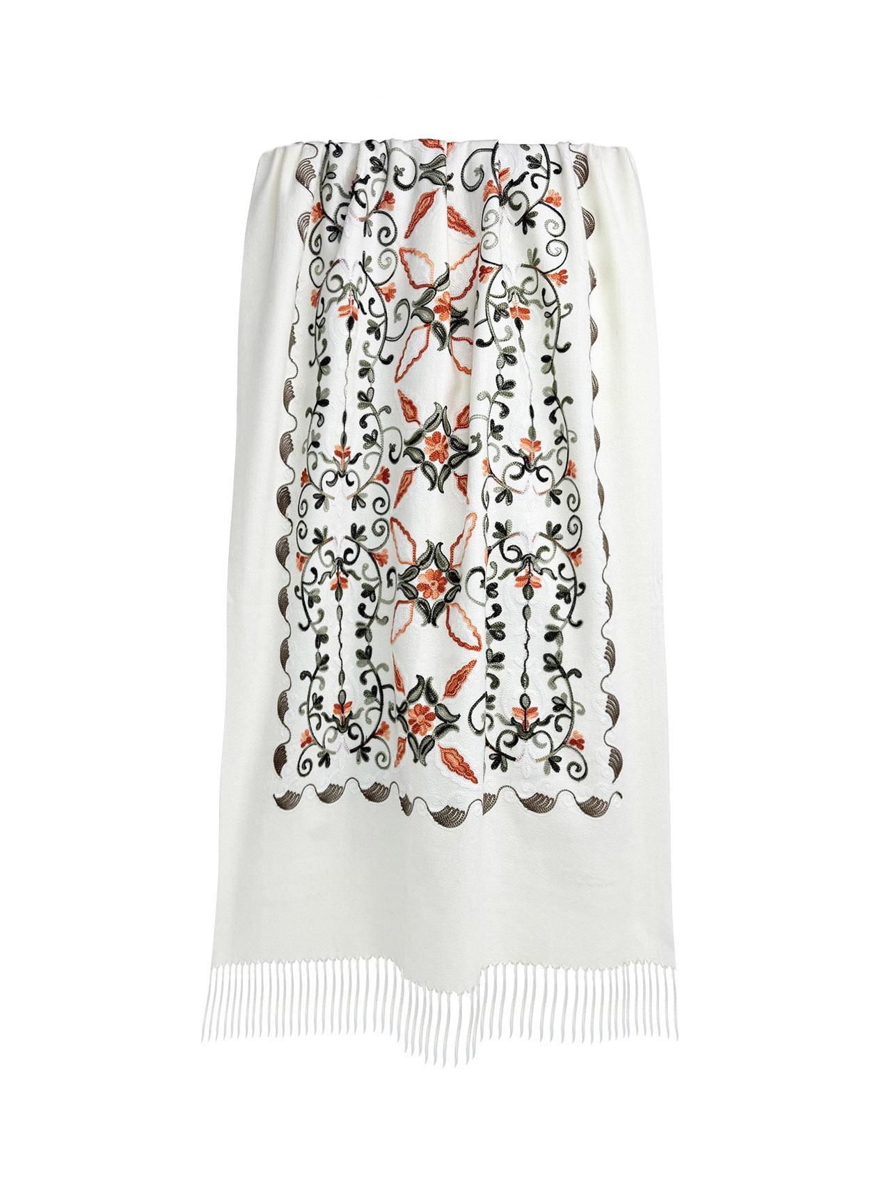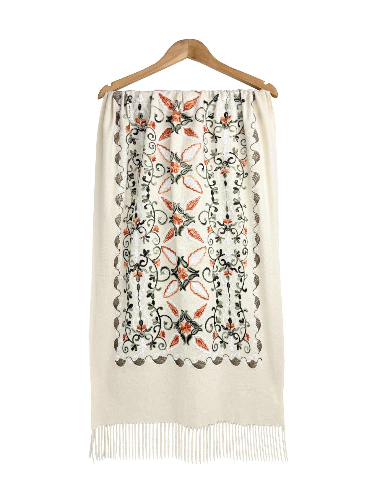 - This winter fashion scarf features a summer season floral design. 🌸 The scarf comes in various colors, including cream, navy, red, and green. Each scarf is adorned with tassels, adding a stylish touch to your outfits.