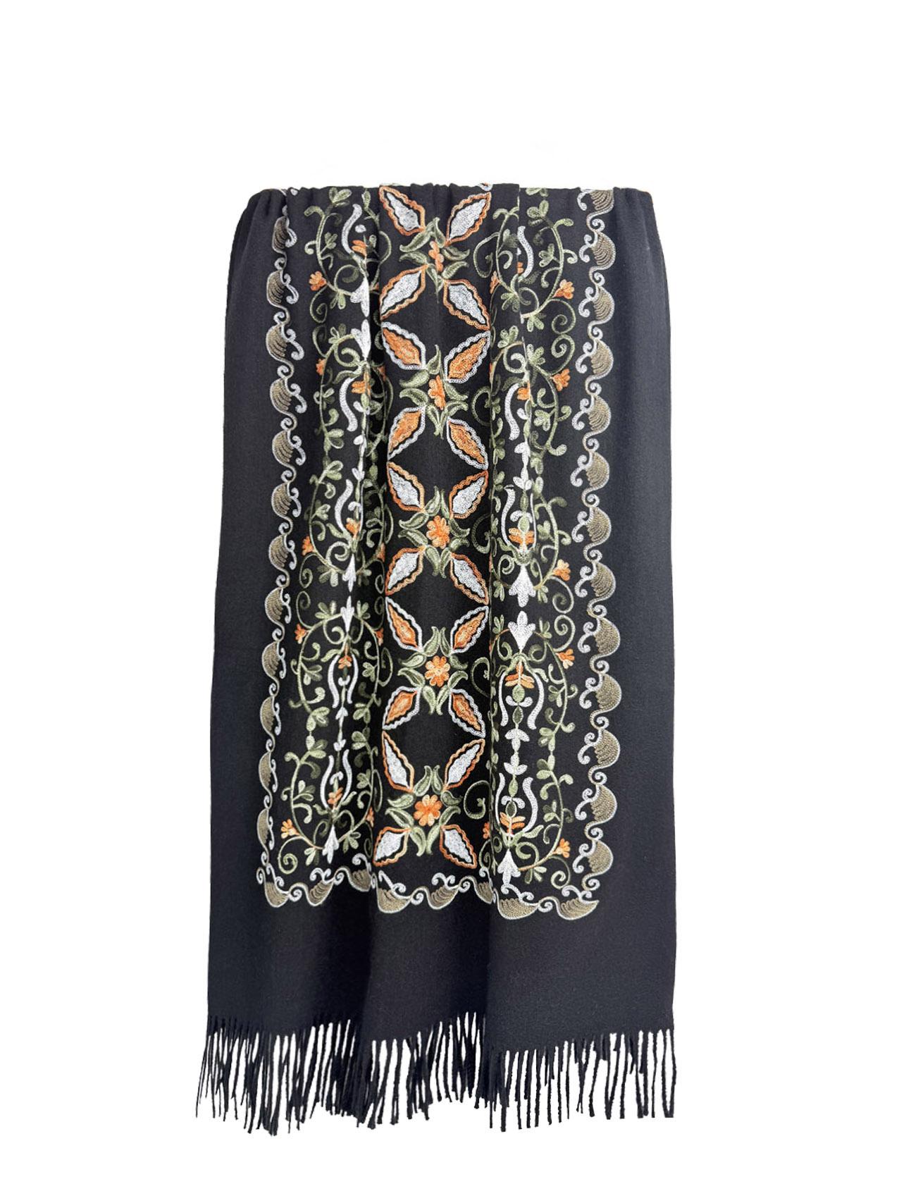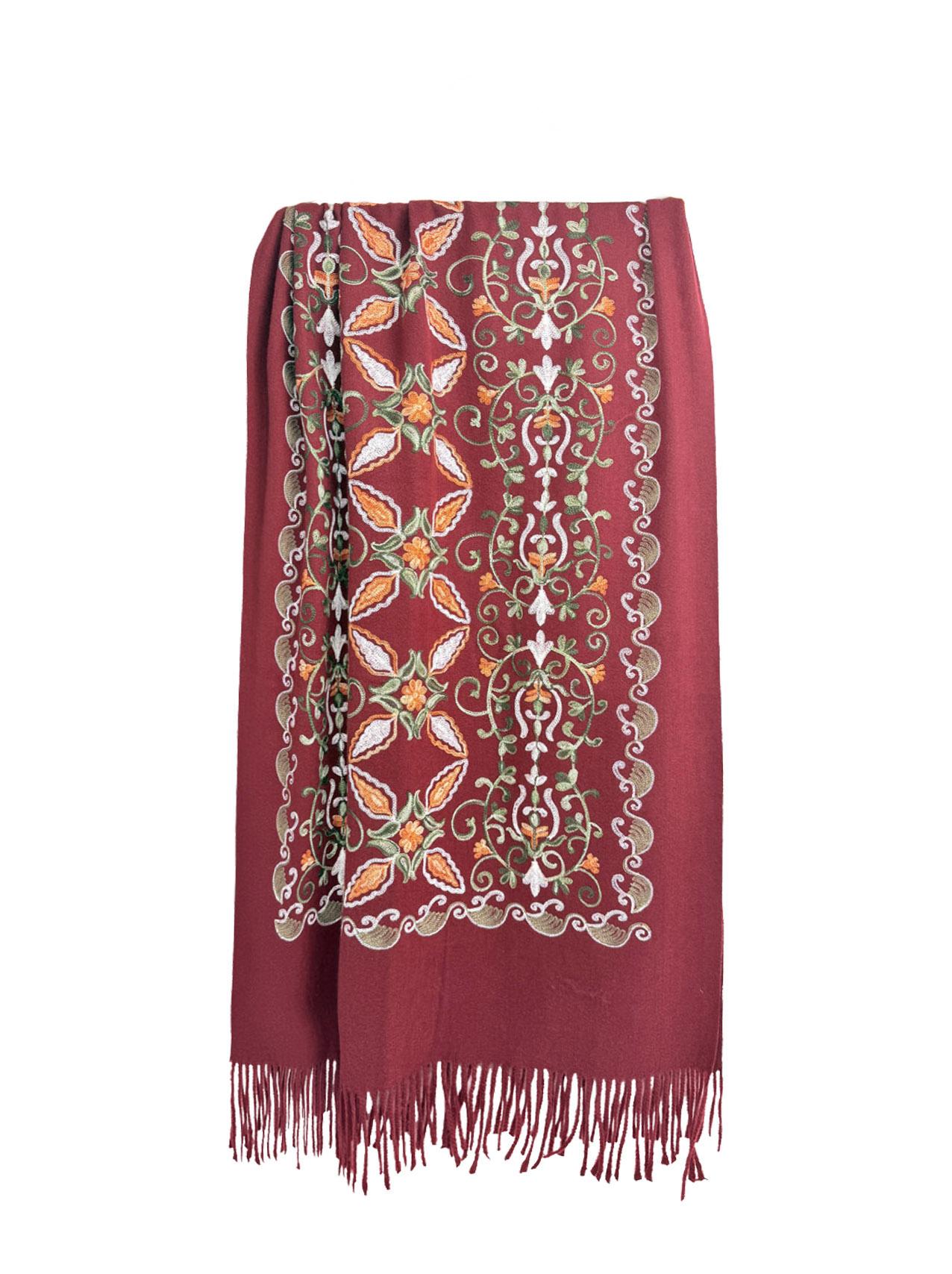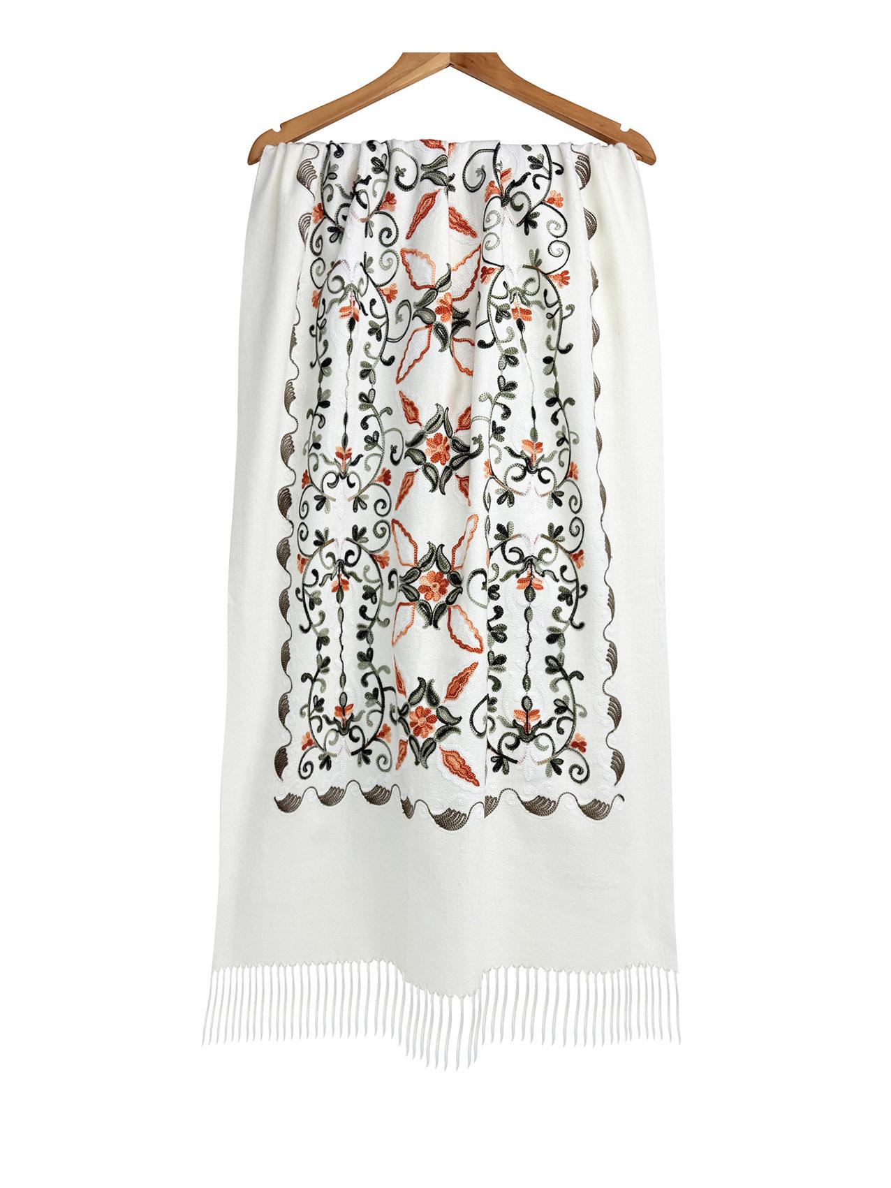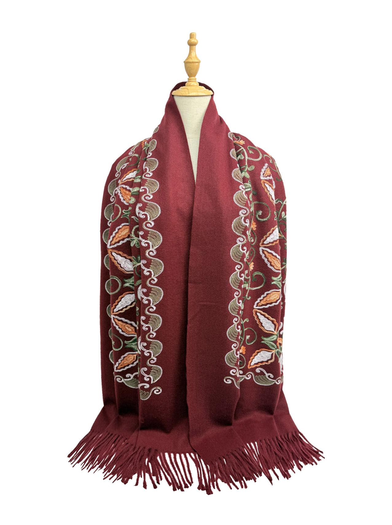 - The scarf is perfect for adding a pop of color to your winter wardrobe. It can be paired with any outfit to create a fashionable look. The floral design and tassels make it a standout accessory.