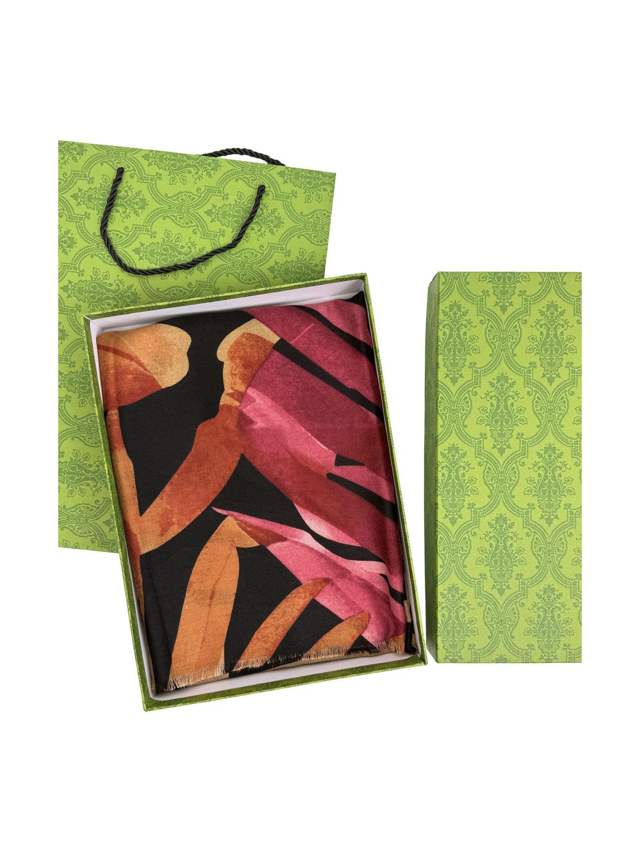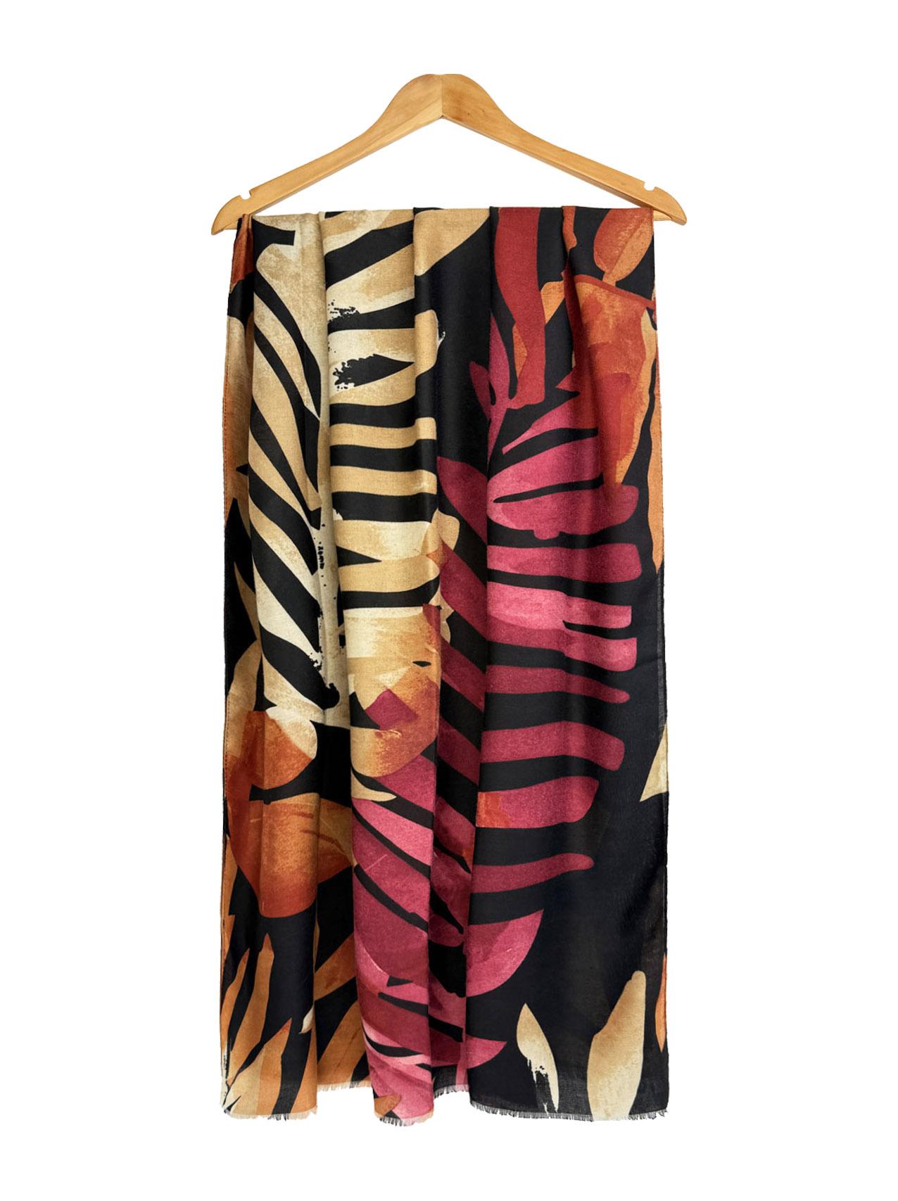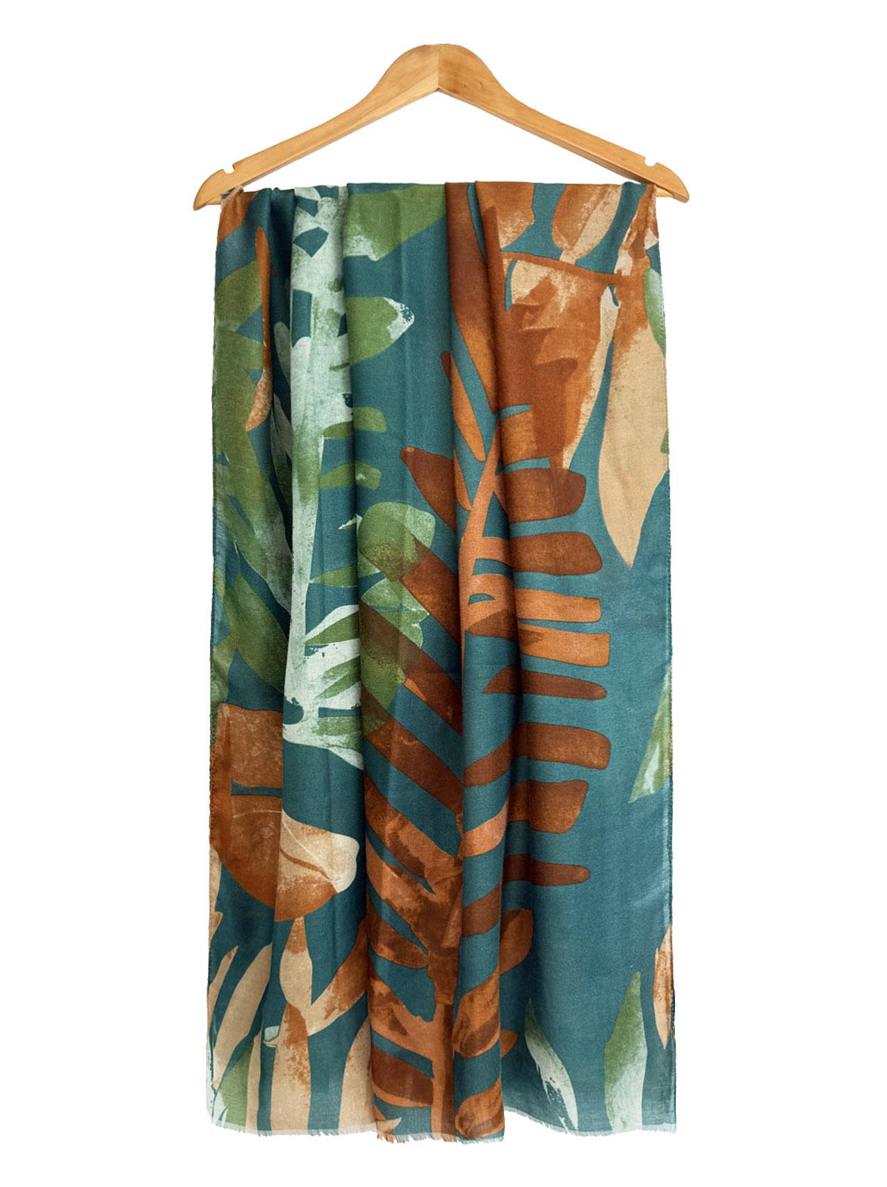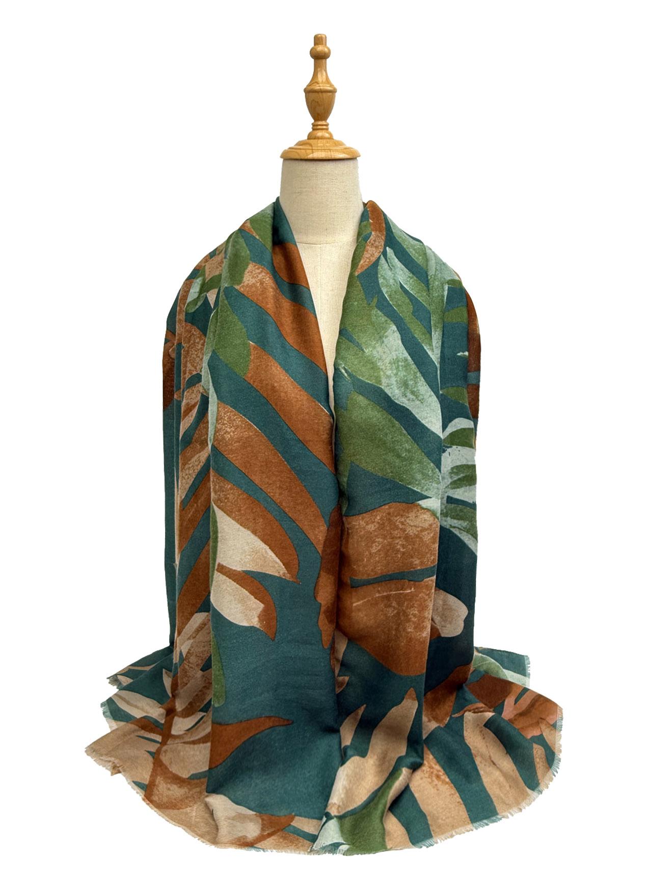 Elevate your winter style with this vibrant leaf print scarf. Perfect for adding a pop of color to your outfit, this scarf offers stylish warmth. The bold colors make it a standout accessory. Ideal for those seeking a fashionable yet cozy addition to their wardrobe.