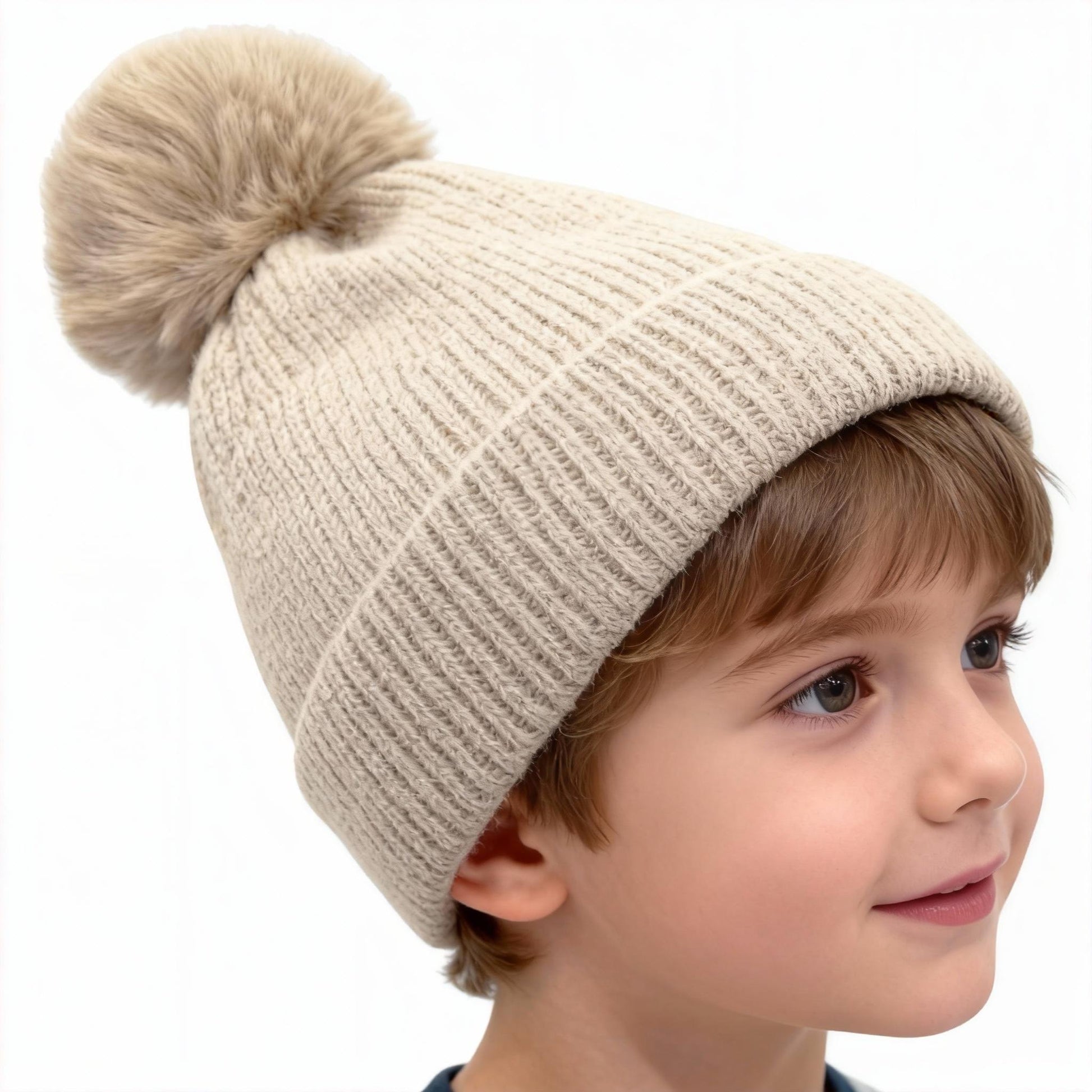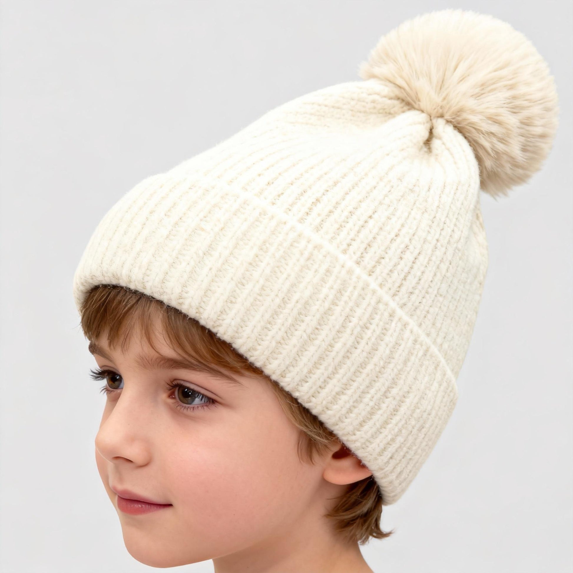 Solid Color Wool Knitted Hat for Autumn and Winter - Casual Versatile Cold Resistant Ear Protection Hat with Pom Pom for Youth